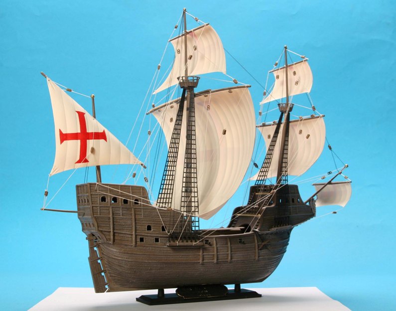 Модель корабля 16 века, на кораблях такого класса конкистадоры отправлялись покорять земли Нового Света. Корабль мог принять на борт до 900 тонн груза при водоизмещении 1600 тонн и мог перевозить 600-700 вооруженных человек. Для своего времени этот корабль был хорошо вооружен, на него устанавливалось 10 корабельных пушек и фальконетов.